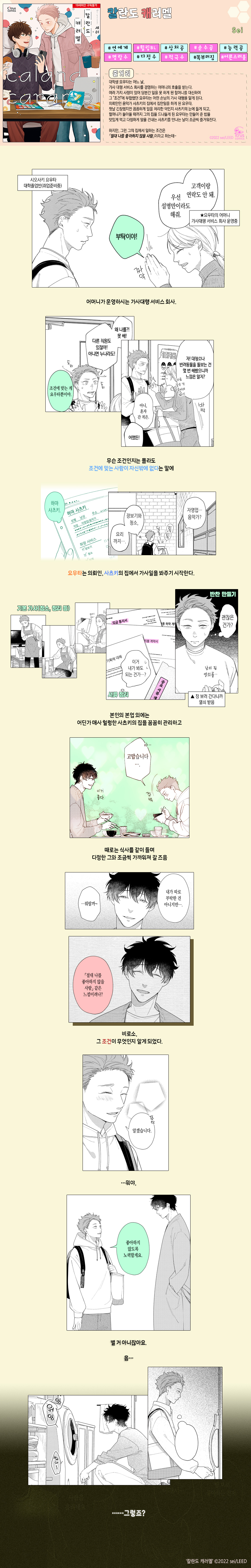 작가님 특유의 뽀송뽀송하고 깔끔한 작화랑 자연스러운 스토리가 마음에 들어요 근데 꽁냥대는게 좀 더 나왔으면 좋겠음
