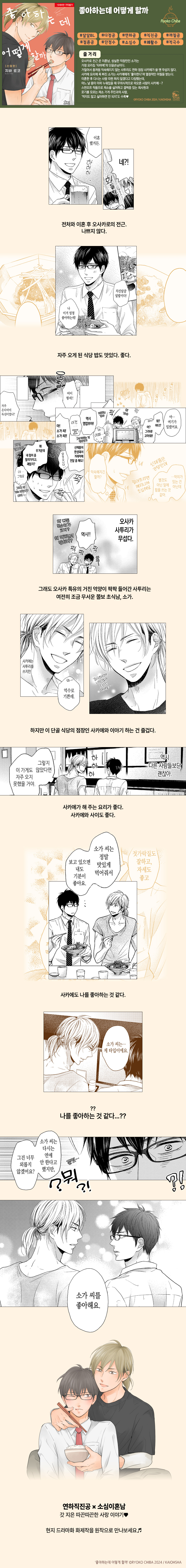 • 드라마화 되었다고해서 궁금해서 봤는데 잔잔하고 힐링되는 스타일의 스토리에요. 메인커플보다는 이상하게 서프커플이 조금 더 궁금해요. 이제 원작을 봤으니 드라마를 찾아봐야겠어요.