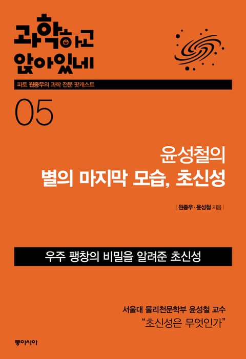 신간 『과학하고 앉아있네 5: 윤성철의 별의 마지막 모습, 초신성』은 동아시아 출판사의 스낵 사이언스(Snack Science) 시리즈 ‘과학하고 앉아있네’의 다섯 번째 책이다. 2013년 12월 우리나라 연구진이 중요한 천문학적 발견을 했고, 그것이 《사이언스(Science)》라는 과학 학술지에 실렸다고 한다. 그 내용은 바로 초신성과 관련이 된 것이다. 이 논문의 공저자인 서울대 물리천문학부 윤성철 교수가 『과학하고 앉아있네 5』에서, 초신성이 무엇인지, 그리고 우리가 우주와 별에 대해 알아야 할 흥미로운 사실들을 이야기해주며 우주탐험의 길로 안내한다.