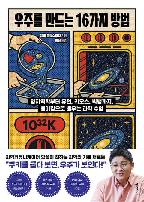 뉴욕대학교 교수이자 과학 전문 작가인 제프 엥겔스타인이 과학커뮤니케이터 항성(강성주)을 번역자로 만나 『우주를 만드는 16가지 방법』을 고민의 해결책으로 제시한다. 어디서나 마주하게 되는 기초 단어들을 모은 ‘필수 영단어집’처럼, 이 책은 핵융합, 원자 구조, 양자역학, 진화, 유전, 열역학과 같은 피하기 어려운 과학 개념 16개를 엄선해 설탕이나 소금, 베이킹소다, 우유와 쿠키, 버터와 달걀, 반죽과 같은 식재료를 준비하거나 쿠키 또는 빵을 만드는 과정에 빗대어 풀이해 준다. 그렇다고 이런 비유들이 단지 호기심이나 흥미를 유발하기 위한 것만은 아니다. 오히려 뉴욕대학교 교수로서 강의실뿐 아니라 팟캐스트를 비롯한 여러 매체를 통해 원자 구조부터 우주의 진화에 이르는 과학의 눈부신 발견들을 게임과 연결해 소개해 온 저자의 오랜 경험을 바탕으로, 신중하게 선택되어 독자들로 하여금 복잡한 개념이나 원리의 핵심을 곧장 이해하도록 한다.