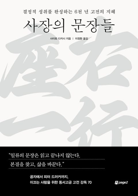 누적 판매 부수 1천만 부를 기록한 자기계발 분야의 베스트셀러 작가 사이토 다카시가 신간 『사장의 문장들』로 돌아왔다. 일본을 대표하는 비즈니스 잡지 《프레지던트》에서 7년간 장기 연재된 칼럼을 모아 출간한 이 책은 이미 현지 CEO들에게 많은 사랑을 받았다. 삶과 조직의 결정적 성취를 완성하고자 하는 시대의 모든 사장을 위해 고전에서 발견한 인문학적 통찰을 자기계발과 비즈니스에 접목한 실용적 지혜를 담았다.