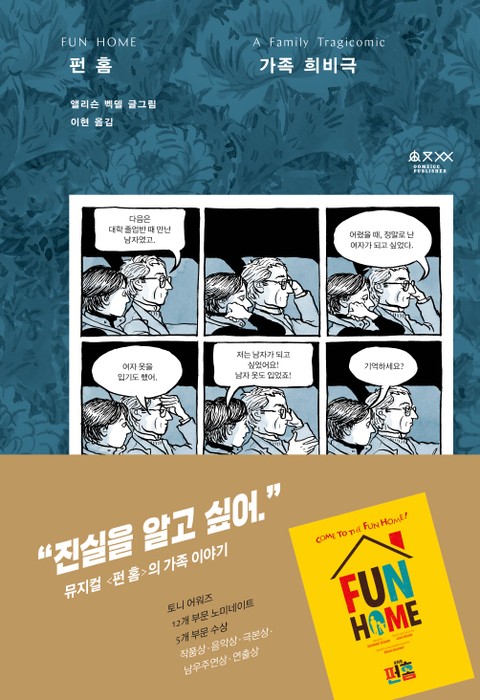 전미비평가상 최고작, 뉴욕타임즈 선정 최고의 문제작, 토니상 5개 부문 석권 브로드웨이 뮤지컬 <펀 홈 fun home> 원작, 아버지와의 관계를 통해 가족 내 퀴어 정체성의 계보를 추적한 베스트셀러 그래픽노블로, 페이퍼백으로 중쇄했다.