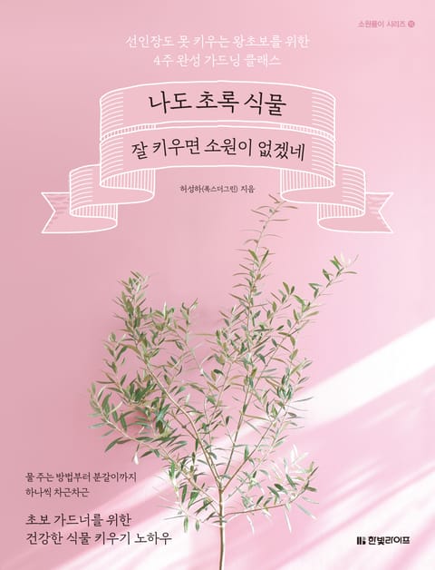 “물은 며칠마다 줘야 하나요?”, “물도 꼬박꼬박 줬는데 왜 죽는 걸까요?”, “물을 안 줘도 잘 크는 식물은 뭔가요?” 초보자들이 가장 많이 물어보는 질문이다. 그만큼 물 주기처럼 간단한 일도 식물 초보자에게는 어렵다. 이 책은 선인장도 못 키우는 사람도 쉽게 홈가드닝에 도전할 수 있도록 꼭 필요한 기본 노하우를 하나씩 알려준다. 실내 햇빛에 대한 이해부터 물 주는 방법은 물론 분갈이 방법, 영양제 사용법, 병충해 관리법, 우리 집에 맞는 식물 고르기 등 막연하지 않게 일러스트와 사진을 활용해 설명한다. 꼼꼼한 기초 지식 덕분에 식물 키우기가 한결 쉬워진다.