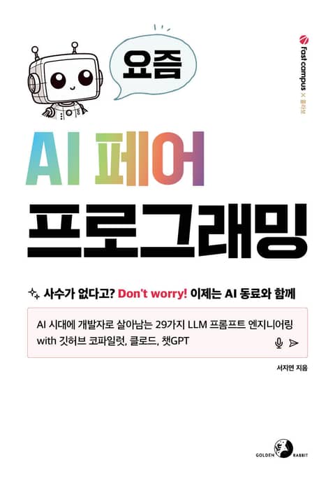 이 책은 효과적으로 원하는 결과물을 얻어내는 LLM 프롬프트 엔지니어링 기법을 배우고 나서, 깃허브 코파일럿, 챗GPT, 클로드를 활용해 프로그래밍을 더 빠르고 즐겁게 할 수 있는 방법을 예제를 곁들여 설명합니다. 완독하고 나면 AI 페어 프로그래밍 시대에 개발자로 살아가는 놀라우면서도 가장 기본적인 생존 방식을, 터득하게 될 겁니다.