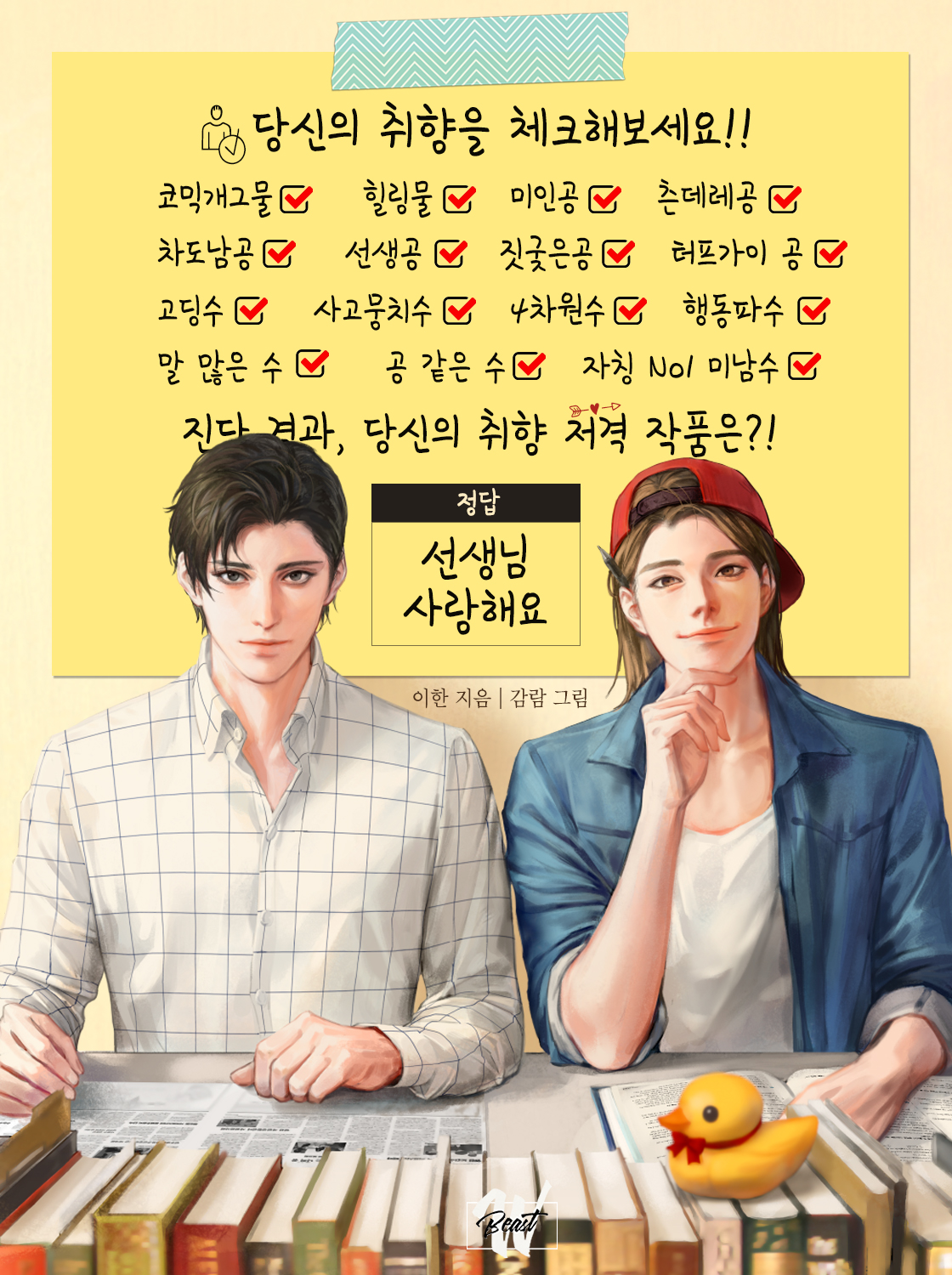 제 어린시절 몰래 읽었던 비엘소설이 이렇게 이북으로 나오다니,,, 그리고 사서 소장할수 있다니 정말 감격스럽습니다,,, 우리오리색기 대로랑 조선생 어떻게 이제왔는가 ㅠㅠ 보고싶었소 피폐와 뽕빨물에 지쳤다면 한번 읽어보고가세요,,, 내 마음속 웰컴투동막골 그잡채 소설