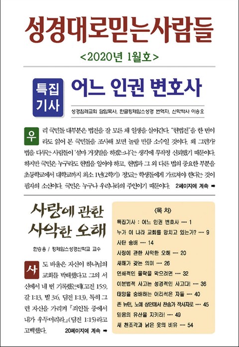 성경대로믿는사람들 2020년 1월호(통권 334호)