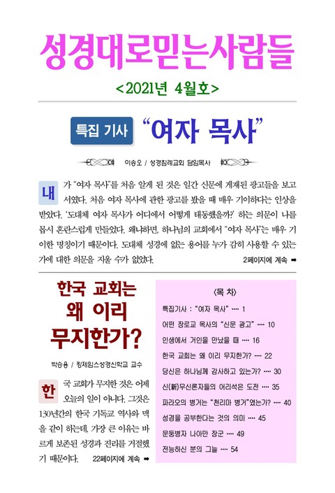 성경대로믿는사람들 2021년 4월호(통권 349호)