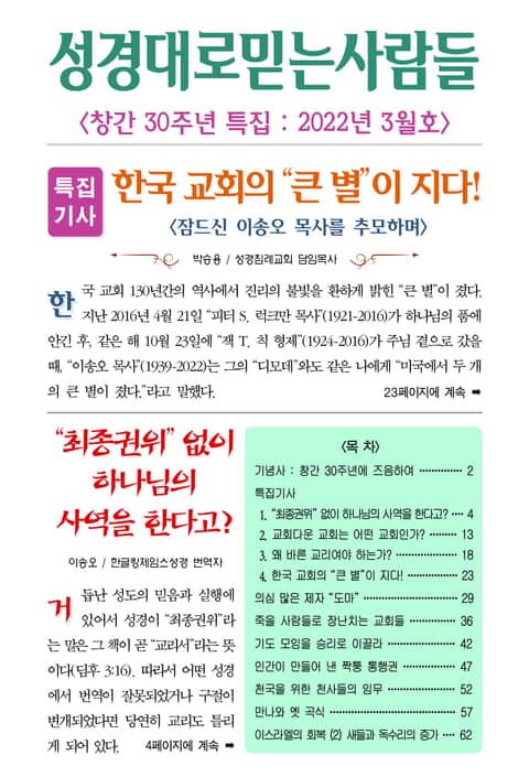 성경대로믿는사람들 2022년 3월호(통권 360호)