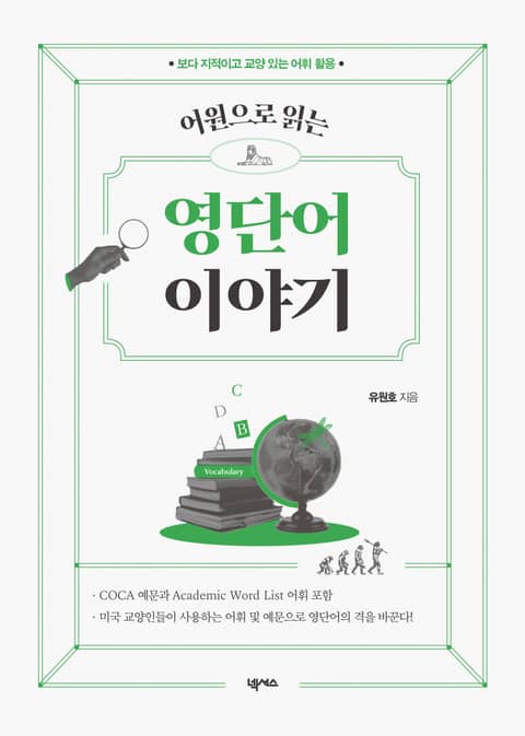 어원으로 쉽고 빠르게 이해하는 미국 교양인들의 품격 있는 영단어를 만날 수 있다. 접두사, 어근, 접미사에 기반한 자연스러운 어휘 습득이 가능하다. 가장 권위 있는 어휘목록 중 하나인 Academic Word List 어휘를 포함하였다. 연도와 장르가 표기된 COCA 추출 예문을 수록했다. 수록된 모든 어휘에 어근, 강세 표기를 하였다.