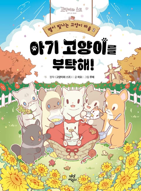 눈 덮인 산 너머로 맑은 에메랄드빛 강물이 흐르는 동화 같은 이곳은 ‘별고양이 마을’이다. 이곳에는 하늘의 별이었던 고양이들이 모여 사각사각, 보글보글 스프를 만들고 우정을 나눈다. 고양이들은 생김새도 좋아하는 것도 각기 다르지만, 함께 맛있는 음식을 나눠 먹으며 기쁘게 웃을 때만큼은 모두가 행복하다. 때로는 어려움에 처한 친구를 위해 똘똘 뭉치고 용기를 발휘하기도 한다. 〈별이 빛나는 고양이 마을〉 시리즈 두 번째 이야기 『아기 고양이를 부탁해!』에서는 우연한 계기로 아기 고양이 두 마리를 키우게 된 별고양이들의 공동 육아 적응기를 다루고 있다. 아기 고양이들을 비롯해 집을 잃은 달팽이, 할머니 고양이 등 작고 여린 존재들을 돌보는 별고양이들의 따스함 가득한 모습을 보며 어린이 독자들은 ‘가족’이라는 존재의 의미와 특별함, 소중함을 깨닫게 될 것이다.