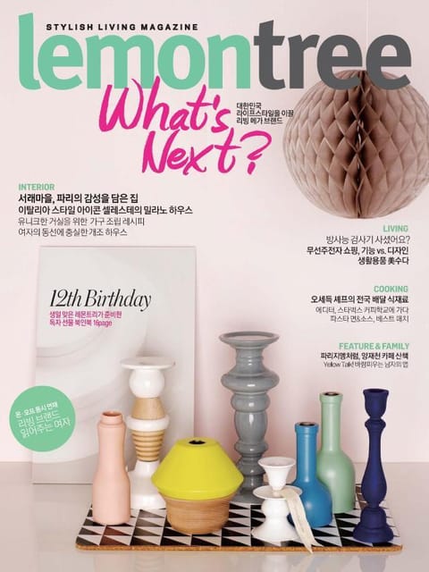 스타일리시 리빙 매거진 레몬트리는 인테리어, 문화, 요리, 생활 정보뿐만 아니라 패션과 뷰티, 여행, 교육 정보를 세련된 감각으로 풀어낸 매거진입니다. 특히 날카로운 상품 분석 정보와 퀄리티 높은 비주얼의 결합은 레몬트리의 가장 큰 매력입니다.