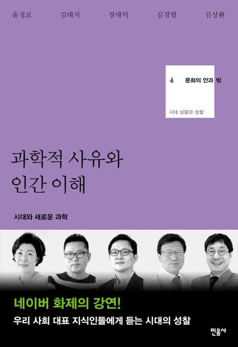 네이버 화제의 강연 ‘열린연단: 문화의 안과 밖(이하 ‘문화의 안과 밖’)’이 책으로 발간되었다. 김우창, 유종호, 최장집 등 한국의 지성을 대표하는 석학들이 직접 기획하고 참여한 ‘문화의 안과 밖’은 산업화와 민주화 과제에 가려져 있었던 우리 사회의 문화적 위상을 검토하는 대형 문화과학 프로젝트이다. 2014년 8월 출간된 1~3권에 이어 『과학적 사유와 인간 이해: 시대와 새로운 과학』, 『인간 문명과 자연 세계: 자연, 물질, 인간』, 『동서양의 문명과 한국: 역사와 전통』 세 권을 선보인다. 2015년 초 8권으로 완간될 예정이다.