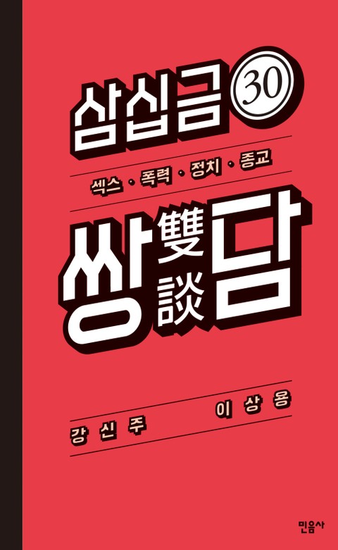 『30금 쌍담』은 이제껏 우리가 경험해 온 상담과 다르다! 최근 각박한 현실, 소통 부재의 상황 속에서 갖가지 상담, 카운슬링 프로그램이 성행하고 있다. 그런데 가만 살펴보면 문제의 핵심에 다가서지 못하고 겉도는 질문들, 전부 어디에선가 들어 봤음 직한 대답만이 들려올 뿐이다. 도대체 무엇이 문제인가, 왜 모두 꾹꾹 참고 침묵을 지키고 있는가? 이 문제에 응답하고자 인간의 밑바닥까지 내려가 보는 철야 상담으로 유명한 철학자 강신주와 영화 비평계의 ‘매의 눈’으로 통하는 이상용이 『씨네샹떼』에 이어 한 번 더 뭉쳤다. 마침내 두 사람은 금기가 우리의 생각과 입을 틀어막고, 말 잘 듣는 노예로 길들이고 있다고 지적하며 보다 강력한 ‘충격 요법’을 권한다. 금기에 주눅이 든 상태로는 자기 자신에겐 물론, 한 사회의 주체적인 구성원으로서도 당당할 수 없기 때문이다. 하루가 멀다 하고 비상경보를 울려 대는 우리 사회를 위해, 그곳의 주인이자 변화의 주체인 명랑 시민들을 위해 『30금 쌍담』이 세상에 나온 것이다.