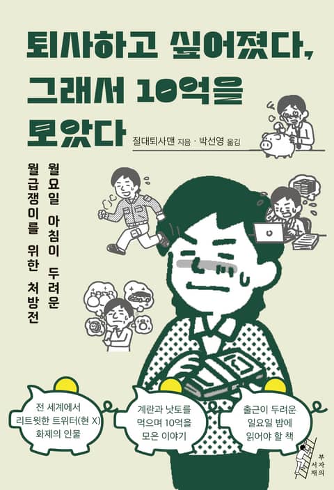 꾸준한 저축 습관과 소박한 식단, 현실적인 자산 증식 과정을 공유하며 수많은 팔로워의 공감을 얻은 ‘절대퇴사맨’의 첫 책이 나왔다. 저자는 형편없는 임금과 극악의 노동 환경 속에서 살아남은 ‘잃어버린 세대(ロスジェネ)’로 블랙기업에서 버텨낸 끝에 10억을 모았다.