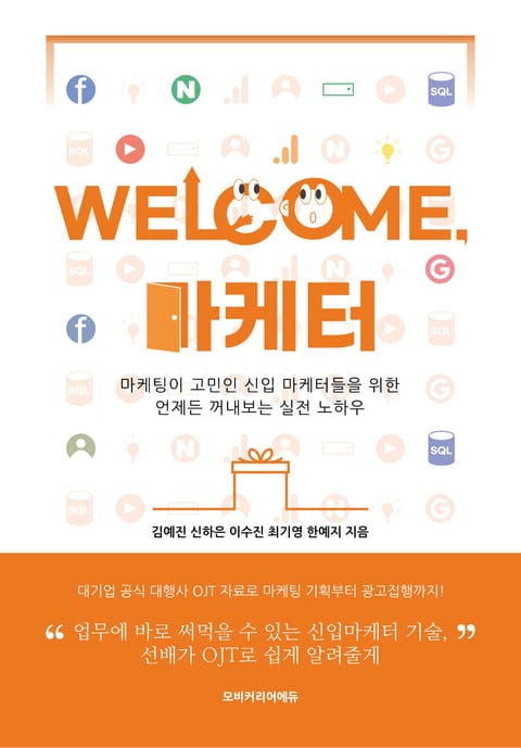 '웰컴, 마케터'는 그런 신입 마케터분들의 마음을 이해하고 문제를 해결해 줄 수 있어요. 실제 광고 대행사의 OJT 자료를 재구성해 대외 활동이나 짧은 인턴 경력으로는 알지 못했던 진짜 고객사와 일하는 방법을 담았기 때문이에요.