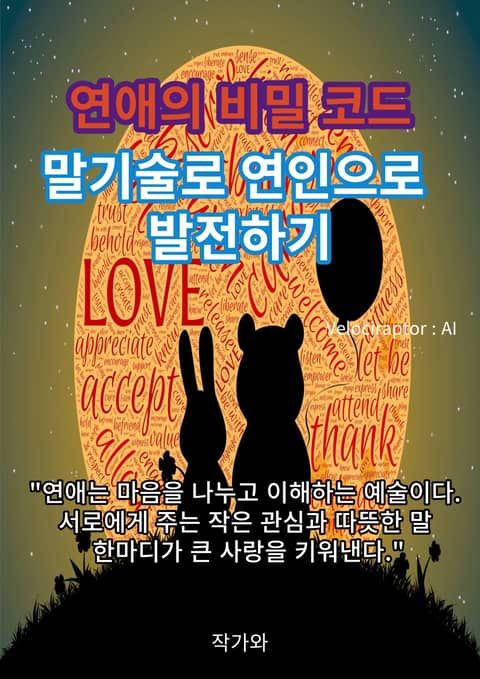 AI활용) "연애의 비밀 코드 말기술로 연인으로 발전하기"는 연애에서 성공적인 소통을 위한 비밀 코드와 말기술에 초점을 맞춘 책입니다. 책은 다양한 주제를 다루며, 개방형 질문과 폐쇄형 질문을 효과적으로 사용하는 방법, 감정적인 소통의 중요성, 몸짓 언어의 의미 해석, 상호 간 존중과 이해, 건설적인 피드백의 제공, 갈등 해결 전략 등을 다룹니다. 이를 통해 독자들은 자신과 파트너 간의 소통을 더욱 풍부하게 만들어 연애를 더욱 의미 있는 관계로 발전시킬 수 있는 방법을 배울 수 있습니다.