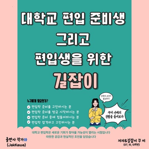 누구보다 편입 준비생과 편입생들에게 따뜻한 공감과 차가운 현실적인 조언을 할 수 있기에 전자책을 작성했습니다.