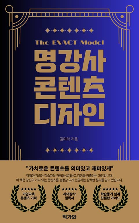 《명강사 콘텐츠 디자인》은 20년 이상 기업교육 현장에서 축적한 실무 경험과 박사학위 연구를 바탕으로 개발된 ENACT 모델을 소개합니다. 이 모델은 강의의 재미와 의미를 균형 있게 설계하여 학습자들의 적극적인 참여와 실천을 유도하는 실전 교수설계 전략입니다.