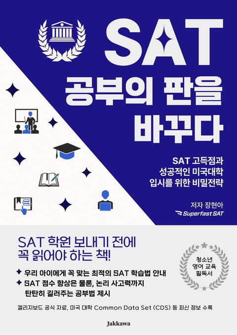 SAT 준비는 단순한 암기가 아닌, 체계적인 학습 습관을 길러가는 과정입니다. 이 책이 학부모님들께 자녀의 SAT 준비에 있어 막연한 불안을 해소하고, 구체적이며 효과적인 전략 수립에 도움이 되기를 바랍니다. 또한 학생들은 제대로 된 공부 방법을 익히고, 꾸준히 도전하여 여러분의 목표를 빠르게 달성하기를 응원합니다.
