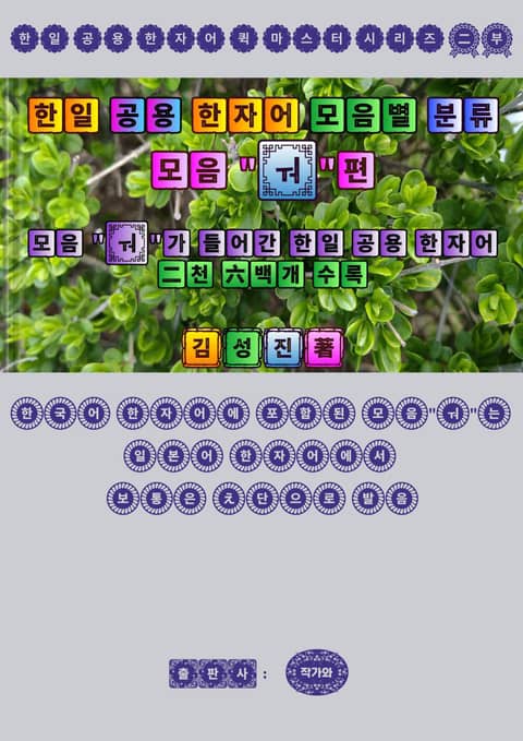 이 시리즈 도서의 샘플 버전을 주변 지인분들에게 돌려서 시독(試讀)시킨 후 소감을 들어 보니 일석십조라는 말이 무색할 정도로 한일 공용 한자어 마스터 효율이 획기적으로 향상되는 효과를 실감했다는 한결같은 품평과 함께 이미 출간한 받침별 분류 한일 공용 한자어 도서외에 모음별 분류 시리즈 도서도 추가로 펴내 주었으면 한일 공용 한자어 퀵마스터에 더 많은 도움이 될 것 같다는 피드백이 들어왔습니다.