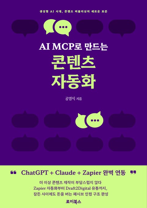 이 책은 ChatGPT, Claude, Zapier 등의 AI 도구를 활용하여 콘텐츠 제작부터 배포, 수익화까지 완전 자동화하는 'MCP(Multi-Channel Publishing)' 시스템 구축 방법을 단계별로 안내합니다. 하나의 아이디어로 블로그 포스팅, 뉴스레터, 소셜미디어 포스트, 전자책, 온라인 강의를 동시에 만들어내는 시스템을 구축할 수 있습니다. 기존 대비 70-80%의 시간을 절약하면서도 더 많은 플랫폼에 일관성 있는 콘텐츠를 배포할 수 있습니다. 특히 실제 운영 중인 자동화 시스템의 구체적인 설정 방법과 프롬프트, 워크플로우를 상세히 공개하여 독자가 바로 적용할 수 있도록 했습니다. 또한 개인 창작자부터 기업까지 활용 가능한 다양한 사업화 모델도 제시합니다. 콘텐츠 마케팅의 새로운 패러다임을 경험하고 싶은 모든 창작자에게 필수적인 가이드북입니다.