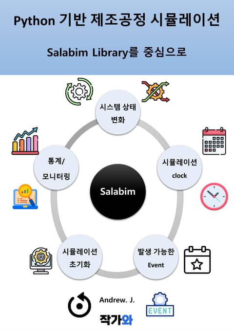 이 책은 Python 기반의 이산사건 시뮬레이션 도구인 salabim을 처음 접하시는 분부터, 실제 시스템 모델링에 적용하고자 하시는 실무자 분들까지 모두 아우를 수 있도록 구성하였습니다. salabim의 개념과 기능을 체계적으로 이해하고, 이를 실제 제조 환경 시뮬레이터 구현으로 연결하는 것이 이 책의 핵심 목표입니다.