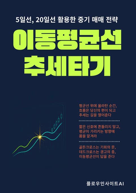 “추세는 당신의 친구다.” 주식시장에서 가장 오래된 격언이지만, 이를 실천하는 사람은 드물다. 이 책은 이동평균선을 활용해 시장의 흐름에 올라타는 방법을 단계별로 제시한다. 하루의 등락에 휘둘리던 투자자들에게 이동평균선은 장세의 큰 그림을 보여주는 나침반이 된다. 1장은 이동평균선의 정의와 계산법, 단기·중기·장기선의 의미와 세 가지 기능을 정리하며, 2장은 5일선과 20일선을 비교해 단기 민감성과 중기 안정성을 동시에 이해하게 한다. 3장은 골든크로스와 데드크로스 전략을 통해 추세 전환의 신호를 활용하는 방법을 알려주고, 4장은 삼성전자·셀트리온·HMM 등의 실제 사례로 전략의 성공과 실패를 확인시킨다. 이어 5장은 추세 추종 매매의 전 과정을 준비, 실행, 관리로 나누어 체계적으로 설명하고, 6장은 매매 전후 점검해야 할 체크리스트로 실전 감각을 키운다. 독자는 이 책을 통해 예측이 아닌 대응의 투자 철학을 배우고, 시장의 평균적인 흐름에 자신을 맡기는 법을 체득하게 된다. 단순하지만 강력한 이동평균선의 힘을 통해, 누구나 흔들림 없는 투자 원칙을 세우고 장기적으로 안정적인 수익을 거둘 수 있을 것이다.