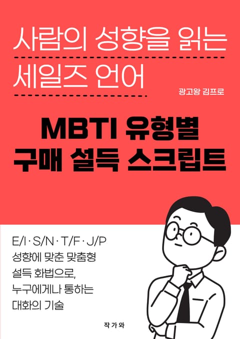 이 책은 MBTI 성향에 따라 달라지는 ‘구매 심리’를 읽고, 각 유형에게 맞는 설득 화법을 제시한다. 단순히 말 잘하는 법이 아니라, ‘상대의 사고 구조’를 이해하는 대화의 기술이다. ‘E형은 열정적인 대화에서, I형은 조용한 신뢰에서’ 구매를 결정한다는 사실처럼, 사람마다 반응하는 언어는 다르다. 이 책은 16가지 성향별로 달라지는 ‘구매 버튼’을 찾아내고, 실제 세일즈 현장에서 바로 쓸 수 있는 스크립트로 정리했다. 판매보다 ‘이해’를 앞세우는 사람에게 이 책은 설득의 새로운 길을 열어준다.