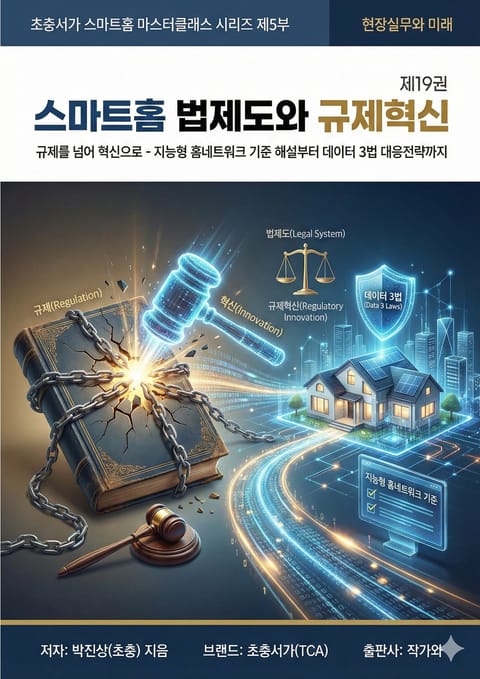 제19권은 스마트홈 산업을 지배하는 법과 규제의 모든 것을 다룹니다. 저자는 2022년 전면 개정된 지능형 홈네트워크 설비 설치 및 기술기준을 해설하며, 망분리 의무화와 예비 전원 장치 설치 등 건설 현장의 필수 준수 사항을 짚어줍니다.