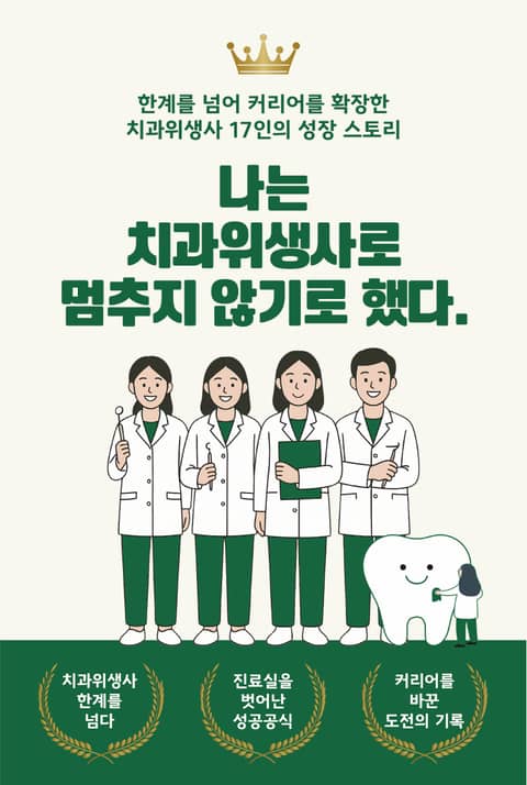 치과위생사로서 진료실 안에서만 커리어의 한계를 느끼고 있다면, 지금 바로 이 책을 펼쳐보세요. 『나는 치과위생사로 멈추지 않기로 했다』는 평범한 진료실의 삶에서 멈추지 않고, 더 크고 넓은 세상으로 나아간 17명의 치과위생사의 이야기를 담고 있습니다.