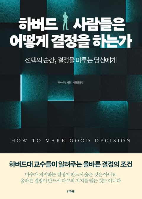 하버드 전문가이자 베스트셀러작가인 저자 웨이슈잉이 하버드 행동심리학 강의를 연구하여 결정이 어려운 사람들에게 해법을 제시한다. 누구나 겪어봤을 상황에 따른 분석과 하버드대 출신 저명인사들의 인생에 영향을 준 결정 사례를 통해 결정 성공에 관한 비밀을 풀었다. 더불어 하버드대 심리학과 교수들이 제시하는 흥미로운 심리학 연구로 확실한 증거를 제시함으로써 잘못된 결정은 어떻게 만들어지는지, 결정의 전체적인 과정은 어떠한지, 잘못된 결정을 피하는 방법은 무엇인지, 결정 후 부족한 부분을 어떻게 보완해야 하는지 친절하게 가르쳐준다.