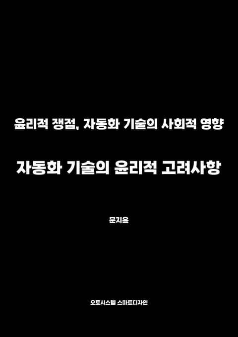 이 책은 자동화 기술의 발전이 가져오는 윤리적 쟁점과 사회적 영향을 깊이 있게 탐구합니다. 저자 문지윤은 AI와 자동화가 우리의 일상생활, 직업, 그리고 사회 구조에 미치는 복합적인 영향을 분석하며, 독자들에게 이러한 변화에 대한 통찰을 제공합니다.
