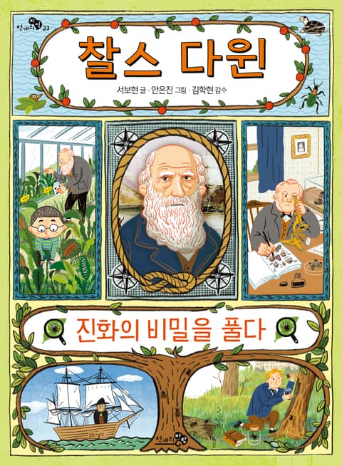 과학자가 꿈인 진우는 어느 날 자신의 허름한 연구실을 청소하다 책장이 일으킨 회오리바람을 타고 1800년대의 영국, 찰스 다윈의 연구실에 떨어져요. 다윈은 낯선 소년의 방문에 깜짝 놀라지만 이내 호기심 가득한 진우의 질문에 답을 하며 둘만의 신기한 우정을 만들어 가요. ≪찰스 다윈, 진화의 비밀을 풀다≫는 시공간을 넘나드는 판타지 이야기로, 다소 어려울 수 있는 진화론을 흥미롭게 보여 주고 있어요. 다윈의 다양한 실험 이야기를 통해서 자신이 주장하는 이론에 대해 사실적인 증거를 제시하려 애쓰는 과학자로서의 고뇌도 엿볼 수 있지요.