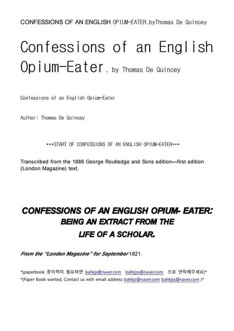 영국의 아편중독자 (CONFESSIONS OF AN ENGLISH OPIUM-EATER)