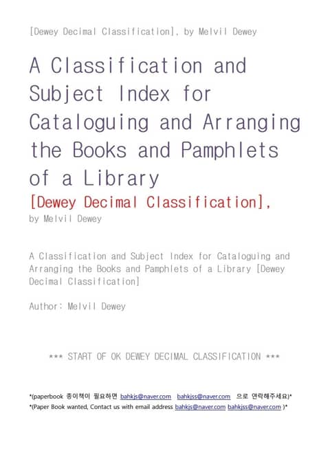 듀웨이도서관책목록분류Dewey Decima Classification 상세페이지