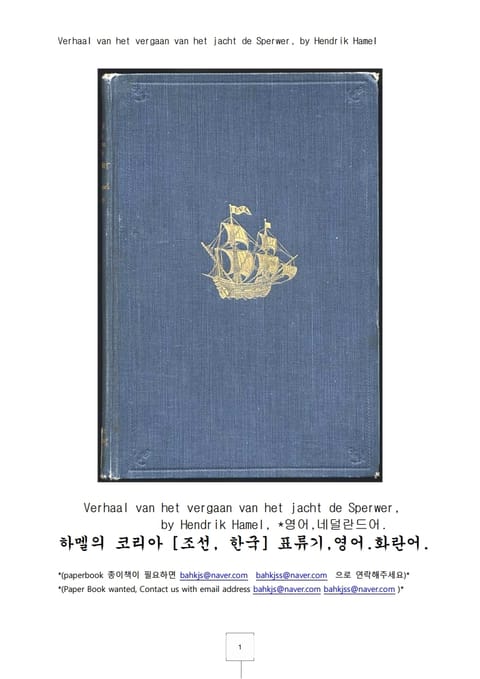하멜의코리아표류기.영어화란어Verhaal van het vergaan van het jacht de.