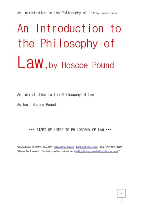 법철학서설.An Introduction to the Philosophy of Law by Roscoe Pound 상세페이지