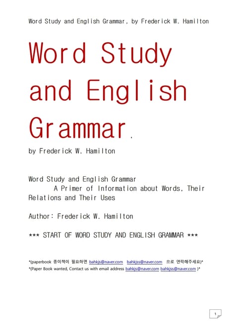 영어단어 연구와 영어문법 (Word Study and English Grammar, by Frederick W. Hamilton)