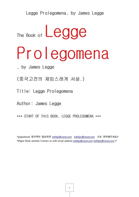 중국고전의 제임스 레게서설 (Legge Prolegomena, by James Legge) 상세페이지