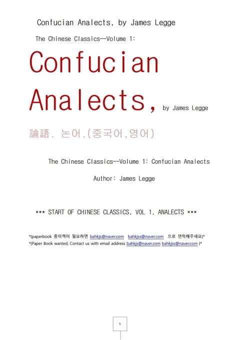 논어 중국어 영어 (Confucian Analects, by James Legge)