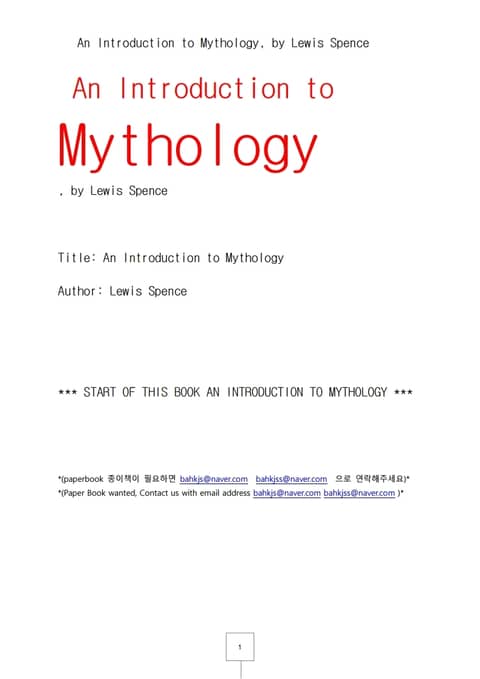 신화의 서설.An Introduction to Mythology, by Lewis Spence