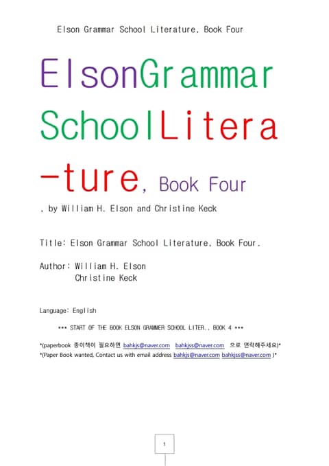 엘손의 미국고교의 영미문학 제4권 (Elson Grammar School Literature, Book Four by Elson)