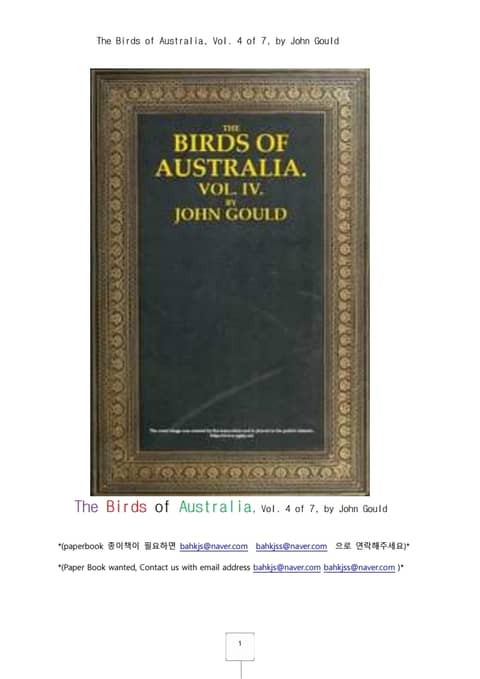 영국 왕립과학자가 영연방구가인 호주의 지방별의 새들을 연구해서 라틴어학명과 영어로 새의 이름을 분류하고 내용을 기술한책.