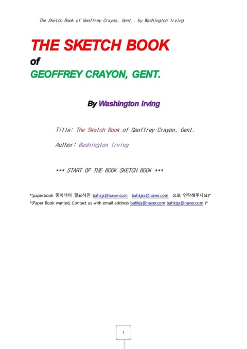 워싱톤 어빙의 스케치북 (The Sketch Book of Geoffrey Crayon, Gent., by Washington Irving)