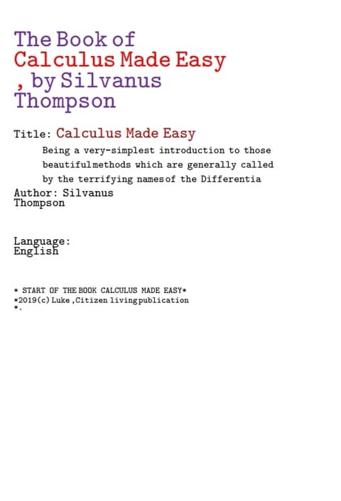 쉽게 만든 미적분학 수학 (The Book of Calculus Made Easy, by Silvanus Thompson)