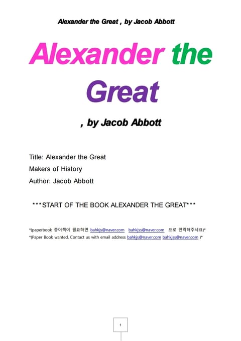 알렉산더대왕 (Alexander the Great , by Jacob Abbott)