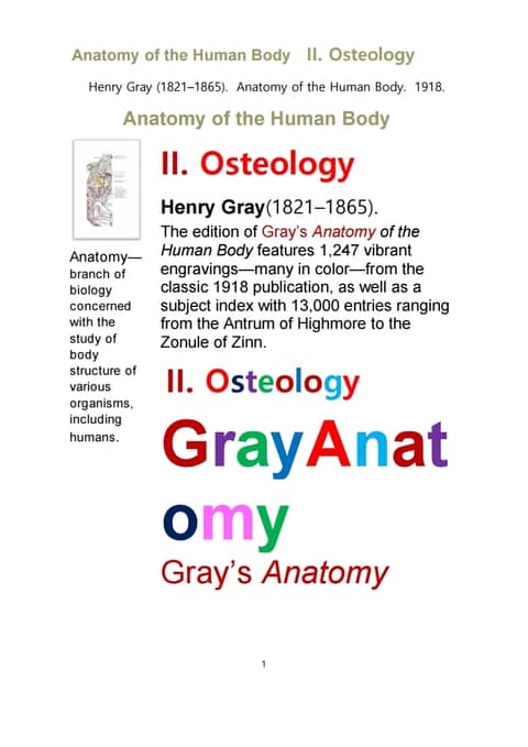 그레이 아나토미의, 제2권 골학 骨學 골해부학.Gray’s Anatomy, II. Osteology. by Henry Gray