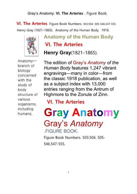그레이아나토미 해부학의 제6권 동맥 의 도해 그림책.Gray’s Anatomy. VI. The Arteries . Figure Book.by Henry Gray