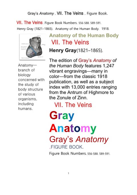 그레이아나토미 해부학의 제7권 정맥 의 도해 그림책.Gray’s Anatomy . VII. The Veins . Figure Book.by Henry Gray
