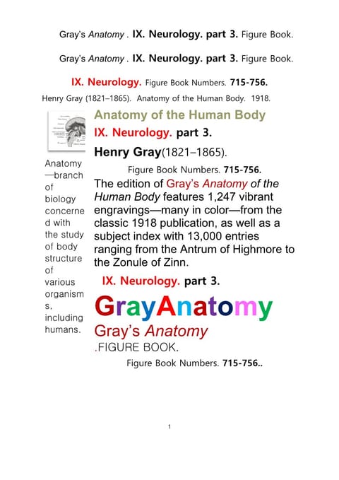 그레이아나토미 해부학의 제9권 3부 신경해부학,신경학. 도해 그림책.Gray’s Anatomy . IX. Neurology. part 3. Figure Book ,by Henry Gray